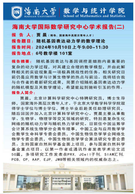 pg电子官方网站国际数学研究中心学术报告(二):随机基因表达动力学的数学理论
